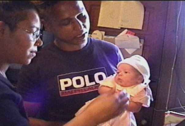 Sumiko and Scott with Scott’s newborn daughter (2000) |