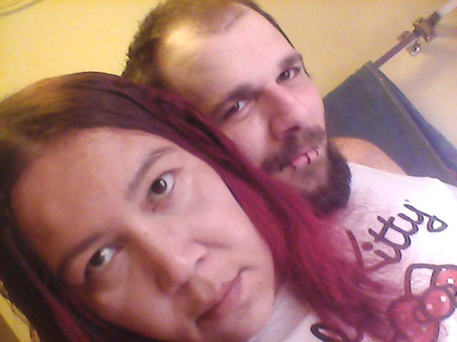 I thought it would be cool to write a story about a homicidal doll-faced girl: I mean, they have stories about homicidal dolls, why not a homicidal girl pretending to be a doll? It would be like Mannequin, The Evil. Yes. By the way, my fiance Greg couldn’t understand why I wasn’t smiling in the pictures, so he kept bugging.. erm, “helping” me and trying to get me to smile. No, he isn’t wearing the Hello Kitty t-shirt, that is an optical illusion.