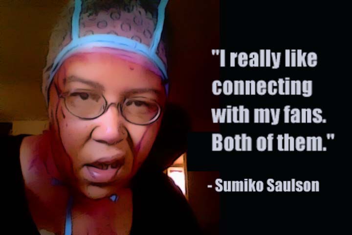 This is a photo of me putting dye in my hair and what I may actually look like when I am blogging with you. I like connecting with my fans… and you can find me @sumikoska on Twitter.