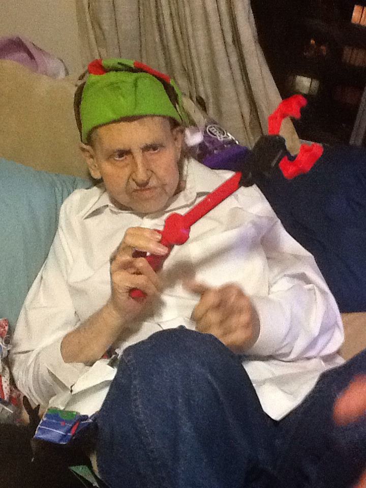 My father on Christmas Eve 2012, sporting an elvish hat and a plastic robot arm for grabbing things (which were my Christmas presents to him). My dad always loved gadgetry and toys. He was like the original model for the IT geek even though he worked with telephone systems.