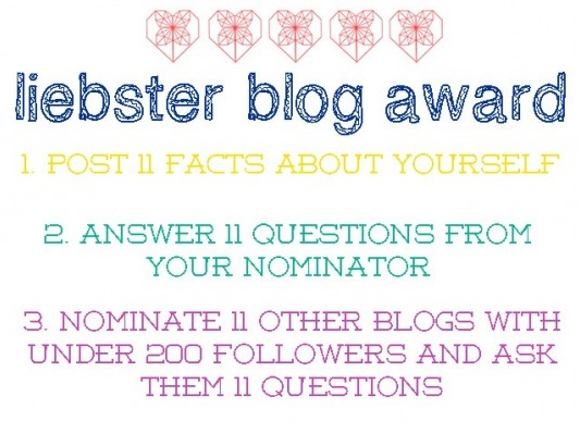 I would like to thank Elisabeth D. Rosa for nominating me for the Liebster Awards. This is the first time I have been nominated. This award is for blogs with 200 or fewer followers. I’m going to be nominating 11 other blogs after this in accordance with these rules: