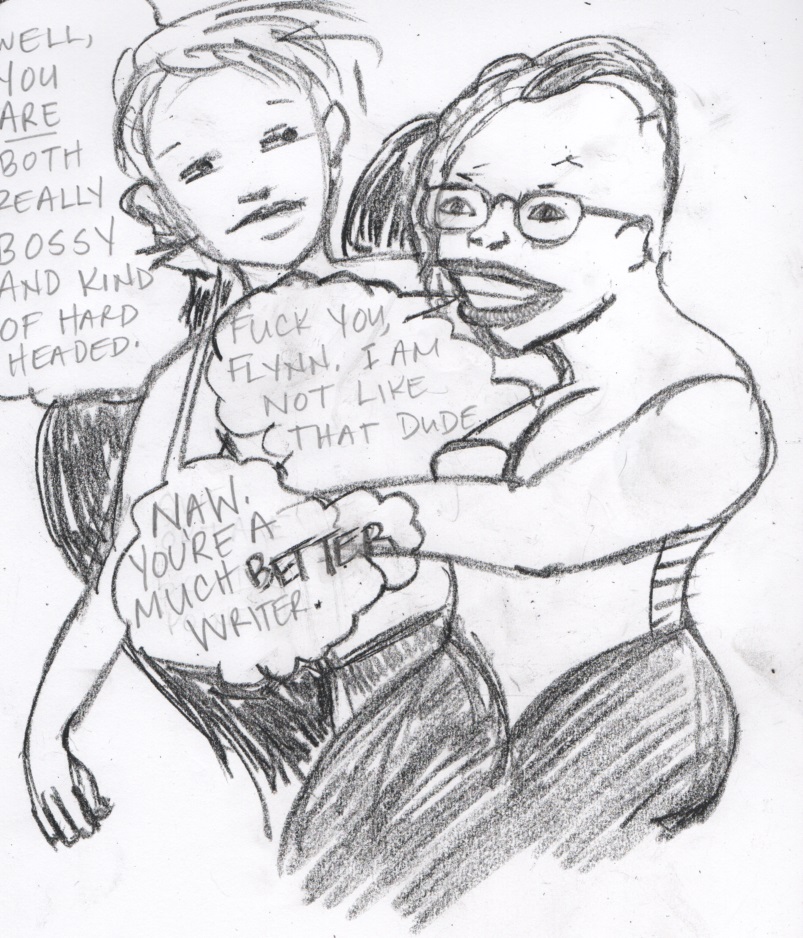 I love Flynn because I wrote him, and I wrote him role reversed: Charlotte doesn’t sublimate her will Flynn, the way I always do in love. She isn’t persuaded, because she already knows what she wants. He’s seduced and that involves a surrender of will (the way love very often does). He struggles with issues of identity: who is he separately? Not just in relation to her. He has trouble asserting himself. But he’s stronger than people seem to think he is.