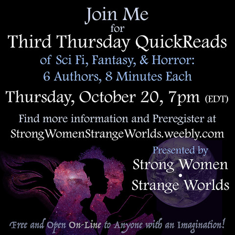 The event takes place live, via Zoom – attend from anywhere! The readings are free, there will be time for questions & answers at the end, and there will be 1 or more giveaways – a prize pack, free books, or something else!